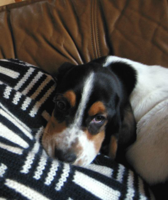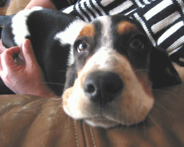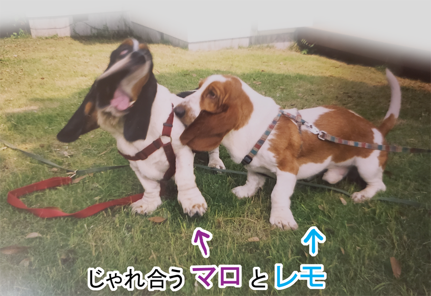バセットハウンドはほっぺがだるんだるんで、顔がベロ~ンと垂れて、おめめも「アッカンベー」したみたいになるんだけど、この頃はまだ垂れてないね。
