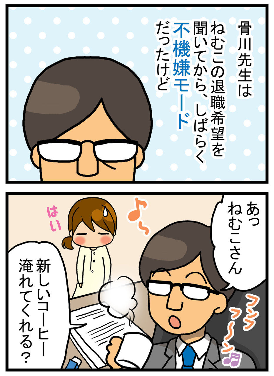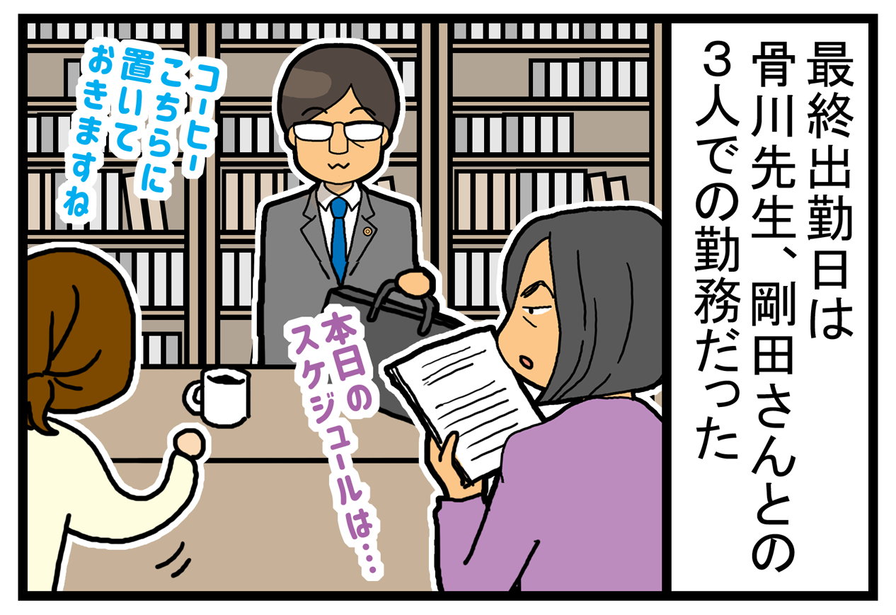【ブラック法律事務所編】64. ついに最終出勤日!美人事務員との別れ 2020年03月08日 20:30 ⇒詳しい登場人物紹介はこちら ☆今までのお話一覧は こちら☆第一話から読むなら こちら☆↓ 前回のお話は こちら☆ そして、あっと言う間に、最終出勤日。 骨川先生から突然「もう来なくていい」と言われて、すぐの退職だったもんだから源さんには、手紙と、餞別としてちょっとしたお菓子をデスクに残した。プライベート(携帯電話)の連絡先を交換していたので、メールでも挨拶したよ。実は源さんとは今でもLINE繋がってるよ。時間が経過して、多少、気持ちが落ち着いたようで、さらに、新しい事務員の採用が決まったこともあって、まぁまぁご機嫌は直ってきていた。 つづく !本日も読んでくれてありがと~!下の方にある拍手ボタン押すと、ねむこのツブヤキがランダムに出るよ!よかったら押してみてね☆過去漫画もよろぴくぅ☆↓ ピュアーな心を忘れないでいたいねって話☆ ↓ ブログランキング参加中 押して~ん 人気ブログランキング にほんブログ村 ↓ ご希望の方はクリック☆↓ Twitterでも更新情報確認できるよ。 ↓ ねむこオススメの素敵ブログ♪ スポンサーリンク 「日常」カテゴリの最新記事 タグ :#法律事務所#ブラック職場#ブラック企業#パワハラ#モラハラ#退職トラブル#弁護士#漫画#絵日記#ブログ スポンサーリンク < 前の記事次の記事 > コメント コメントフォーム 名前 コメント 記事の評価 リセット リセット 顔 星 情報を記憶 コメントを投稿する