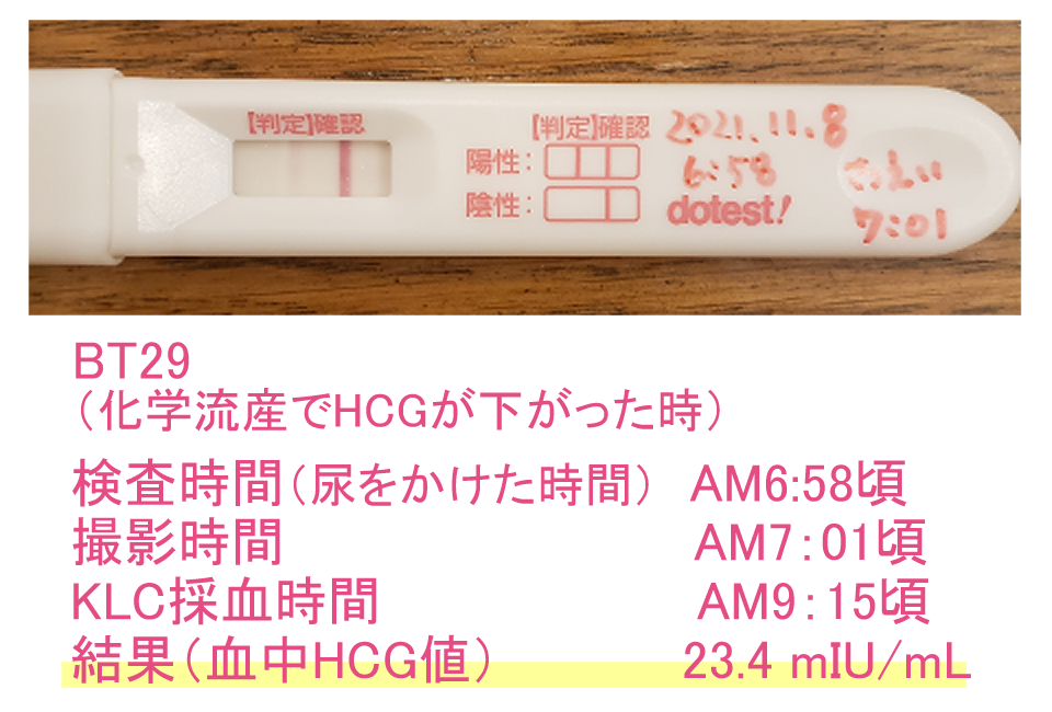 この線の濃さで、血中HCG値23.4mIU/mlでした。